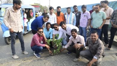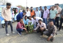 उज्जैन रोड के गड्ढों पर ‘बेशर्म’ के पौधे लगाकर किया प्रदर्शन,