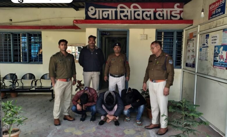 देवास के सिविल लाईन थाना से बड़ी खबर सड़क दुर्घटना के बाद रंगदारी और मारपीट करने वाले तीन आरोपियों को गिरफ्तार कर भेजा जैल,