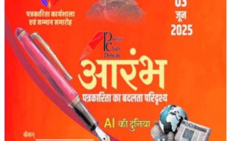 देवास पत्रकारिता की गरिमा और भूमिका पर केंद्रित एक दिवसीय कार्यशाला एवं सम्मान समारोह का आयोजन 3 जून को,