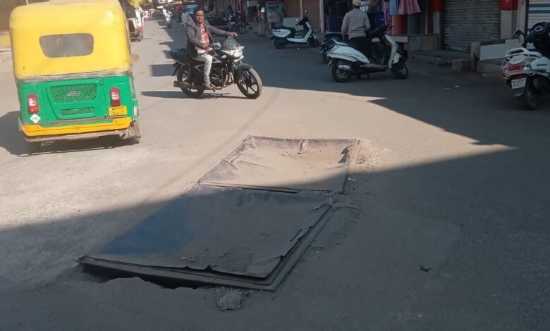 देवास शहर के कई प्रमुख चौराहा पर चेंबर के ढक्कन,जालियां टूटी वाहन चालक हो रहे है दुर्घटना का शिकार जिम्मेदार जानकर भी बने हुए हैं अनजान,