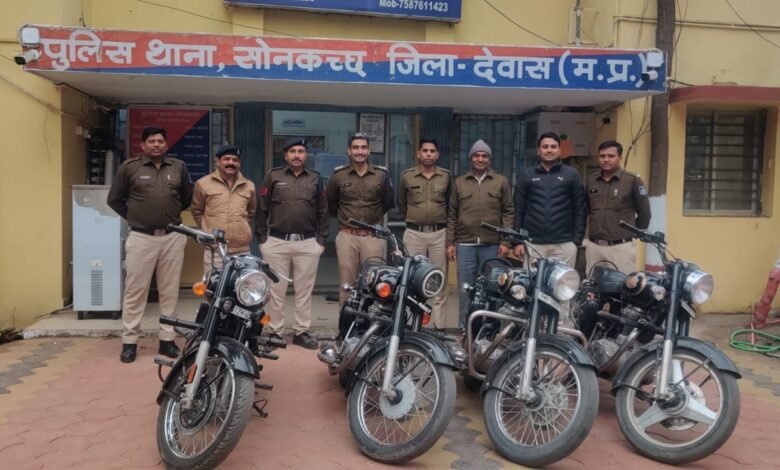 दिनांक 29.01.2026 को वाहन चेकिंग के दौरान एम.जी. रोड मंडी गेट, सोनकच्छ क्षेत्र में 4–5 बुलेट मोटरसाइकिल चालक तेज गति से वाहन चलाते हुए मोडिफाइड साइलेंसर से पटाखे जैसी आवाज करते पाए गए। सूचना पर पुलिस ने घेराबंदी कर 4 बुलेट मोटरसाइकिल चालकों को रोका। वाहन चालकों द्वारा वैध दस्तावेज प्रस्तुत नहीं करने एवं अवैध मॉडिफाइड साइलेंसर का उपयोग करने पर कार्रवाई की गई।