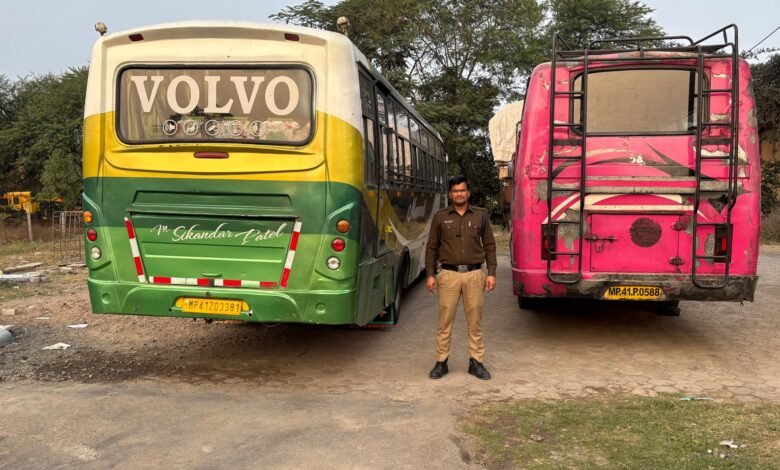 देवास में बस रेसिंग: 2 चालक गिरफ्तार, बसें जब्त तेज गति से कट बाजी करने पर पुलिस द्वारा बड़ी कार्रवाई,