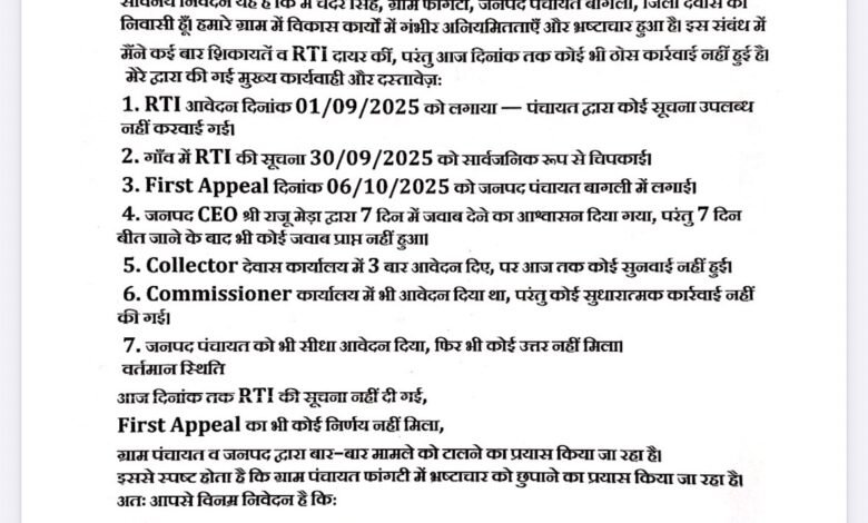 देवास। जनपद पंचायत बागली अंतर्गत ग्राम पंचायत फांगटी, तहसील हाटपिपलिया में मनरेगा योजना के तहत गंभीर वित्तीय अनियमितताओं का मामला सामने आया है। ग्राम पंचायत में पदस्थ रोजगार सहायक जितेंद्र सिंह सेंधव पर स्वयं के निजी लाभ के लिए मनरेगा राशि के दुरुपयोग का आरोप लगाया गया है।