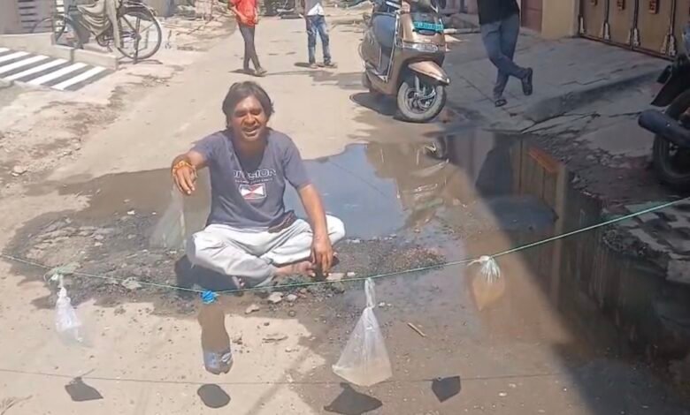 देवास गंदे पानी को लेकर पार्षद प्रतिनिधि रुपेश वर्मा का अनोखा प्रदर्शन, नगर निगम के खिलाफ लगाई ‘गंदे पानी’ की प्रदर्शनी,